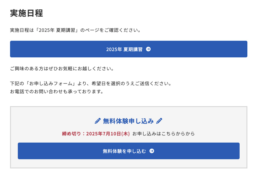投稿記事「講習・特別授業」の無料体験授業予約も簡単管理