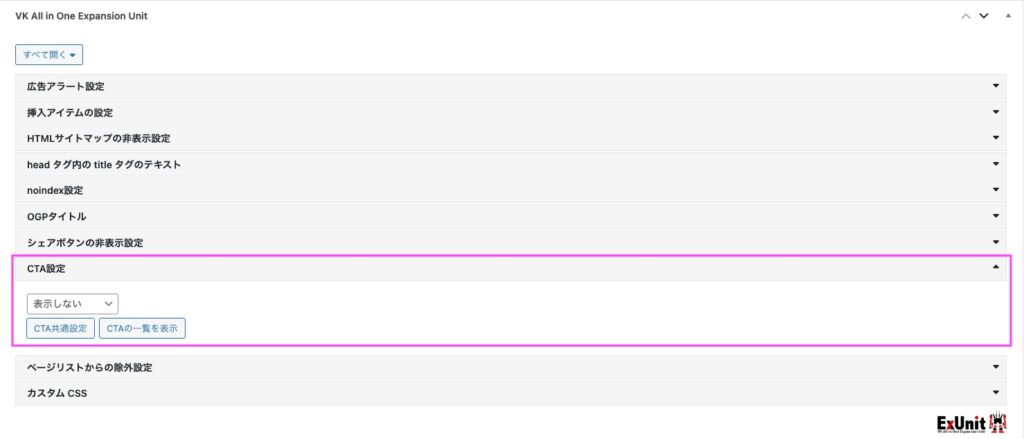 各ページでの CTA 表示設定