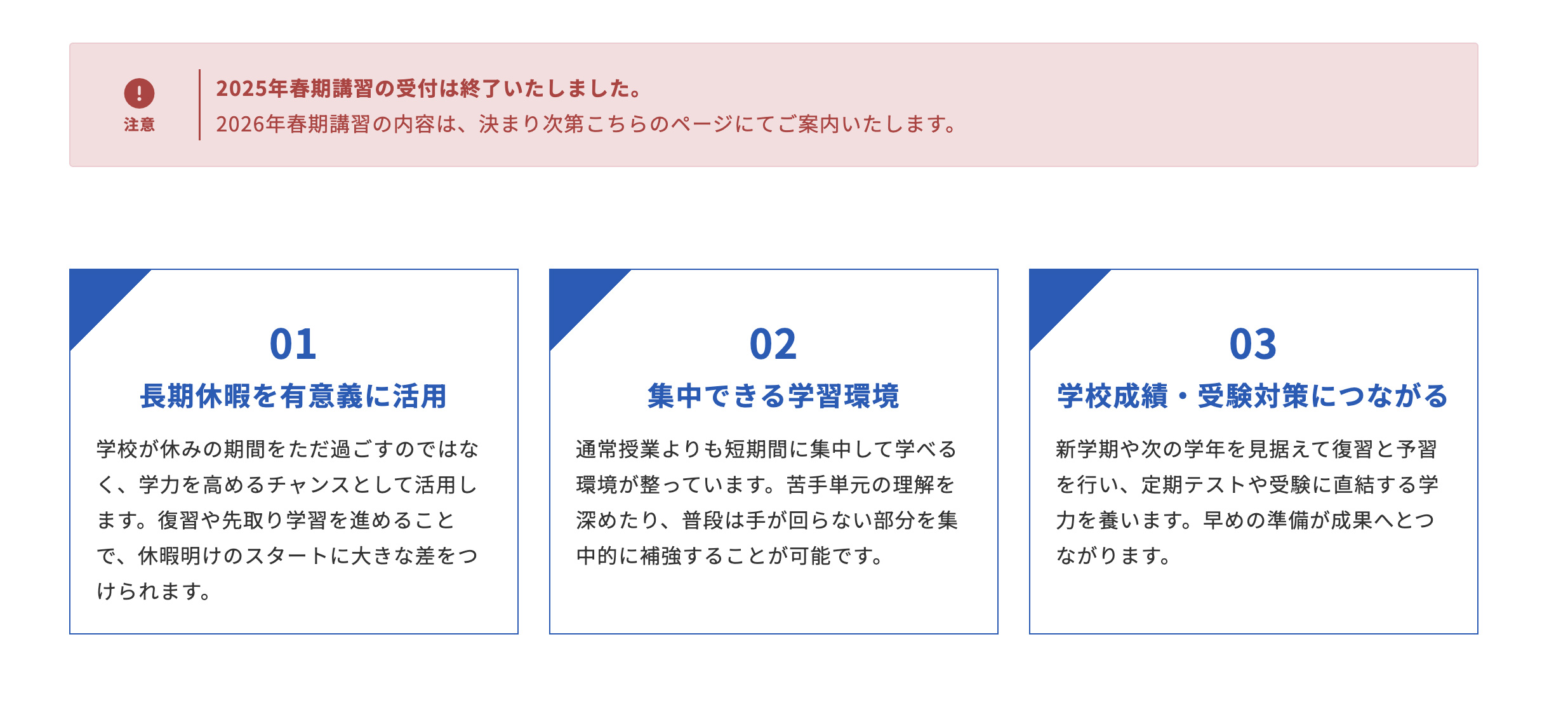 固定ページの季節講習